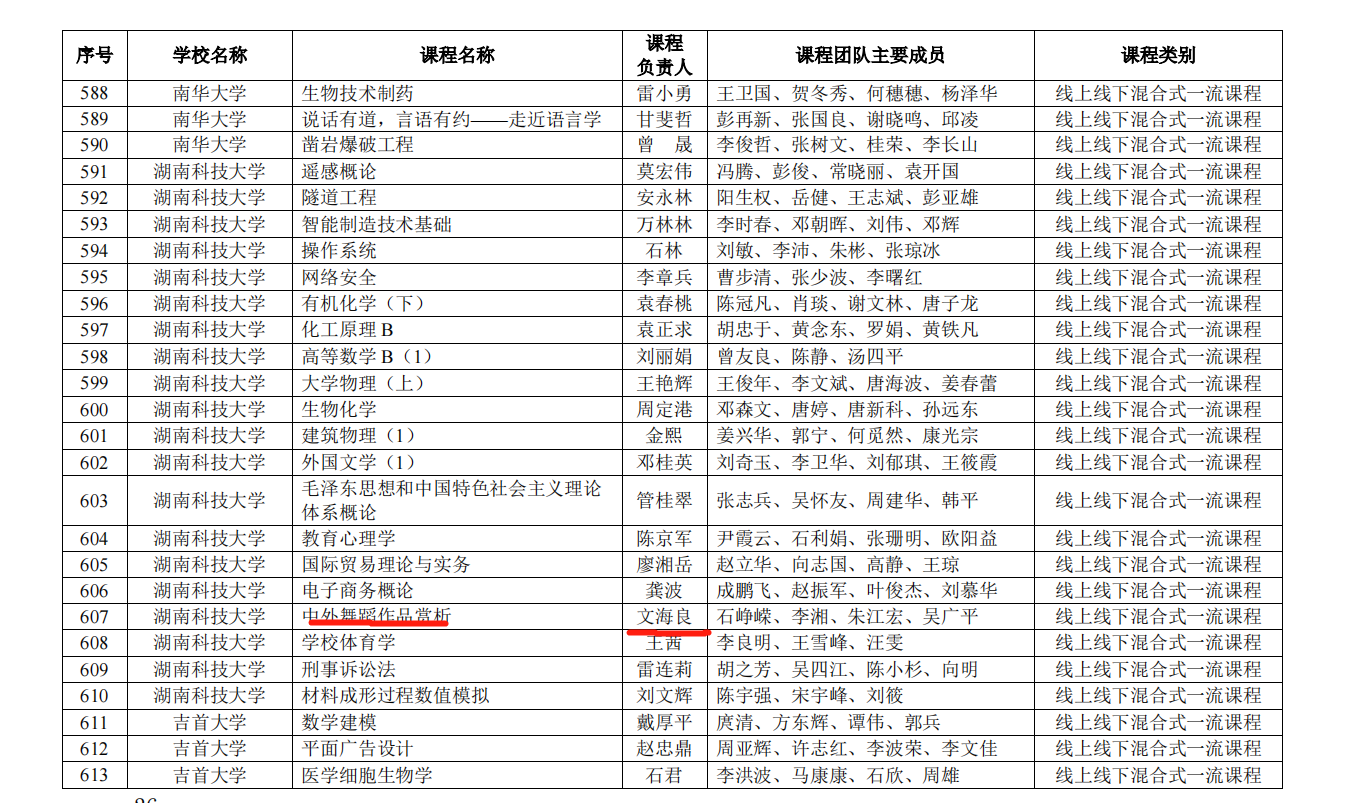 壹号娱乐 由彭浩宇老师负责的混合式课程《基本乐理(2)》、文海良老师负责的混合式课程《中外舞蹈作品赏析》、张然老师负责的线上课程《湖南民间传统舞蹈传承》均获湖南省一流课程立项建设。