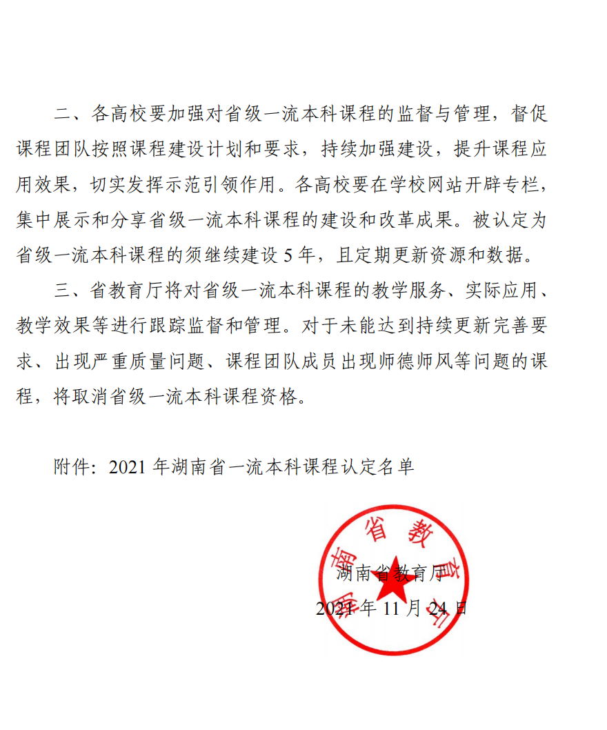 壹号娱乐 三门特色课程获湖南省一流课程立项建设
