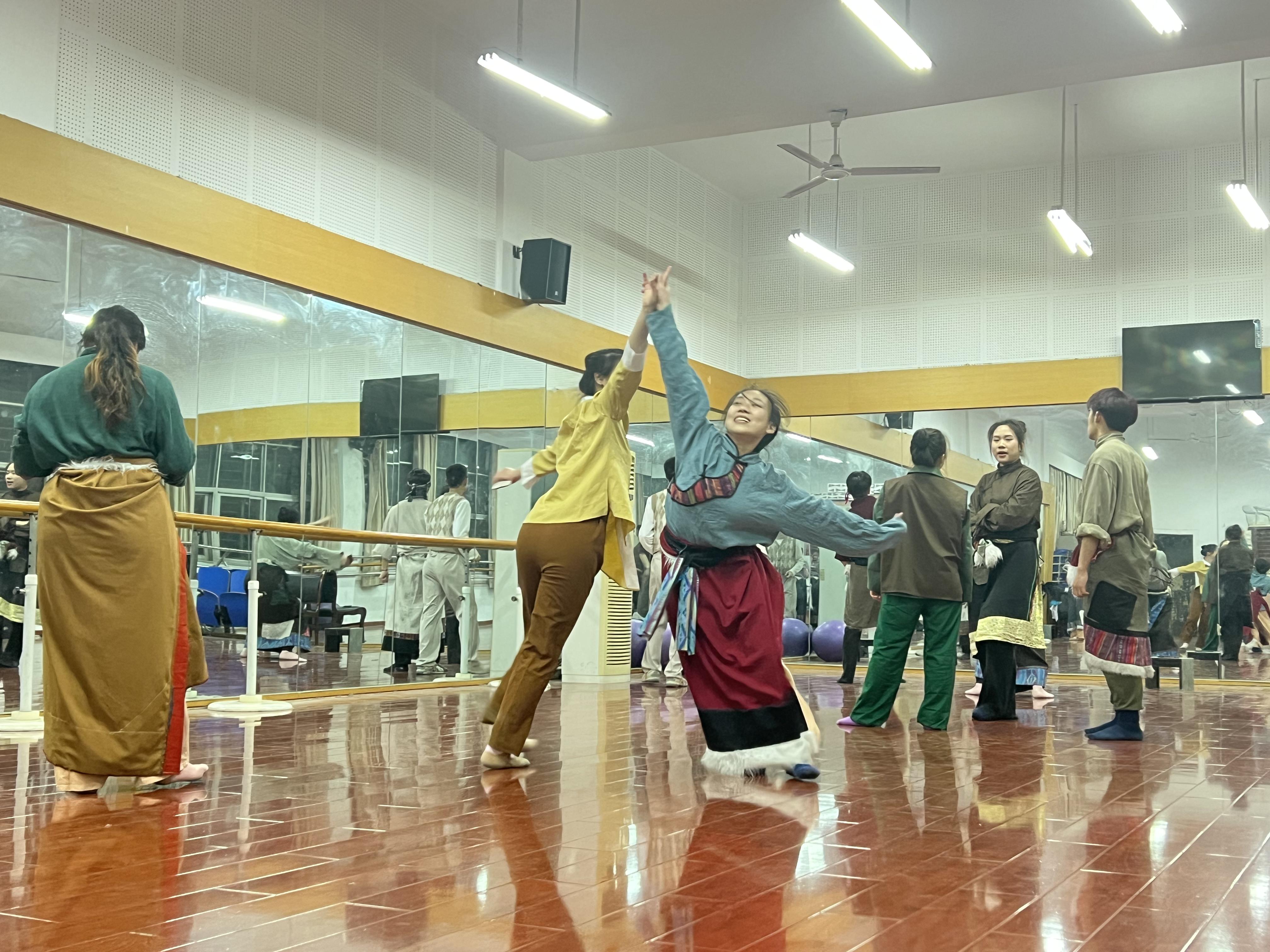 本次参赛作品《远山不远》以感动中国2011年度人物胡忠、谢晓君夫妇为原型,艺术再现了两位主人公放弃都市的安逸生活奔赴甘孜州康定县塔公乡一所孤儿学校扎根十余年支教的感人事迹。在排练过程中,指导老师紧扣“人”的塑造与表达,引导演员们细腻地体会每个动作背后的意义,以及动作气口、质感、节奏的绝对一致,用“专业、投入、用心、用情”8个字完成每一个动作与衔接,艺术中的这种精益求精让选手们很好地演绎出了这段感人至深的支教故事。用舞蹈为载体礼赞教育情怀,以舞蹈特有的身体语言方式呼吁更多的有志之士以奉献、大爱、坚守、信念的情怀,肩负起时代赋予的责任与使命,彰显出平凡群体的生命价值。