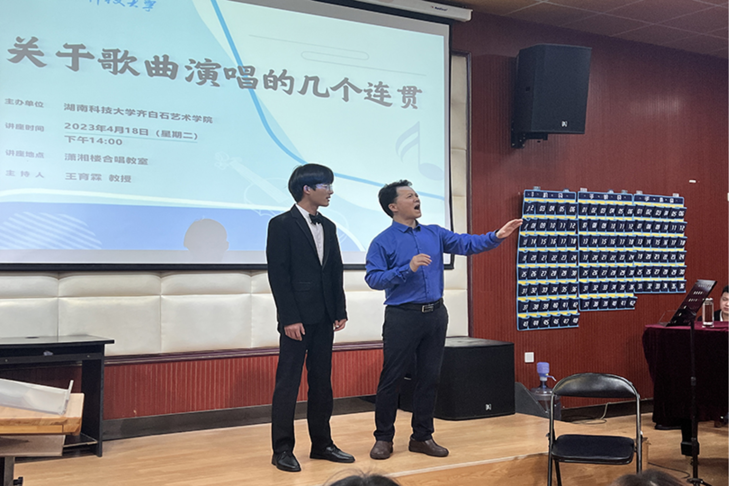 为进一步提升壹号娱乐 音乐系声乐教学质量,提高学生声乐演唱水平,4月18日下午,壹号娱乐 特别邀请到了马关辉教授在音乐系合唱教室开展主题为《关于歌曲演唱的几个连贯》的专题讲座,由壹号娱乐 副院长王育霖教授主持本次讲座。讲座以声乐公开课的形式开展,音乐系师生与会参加。